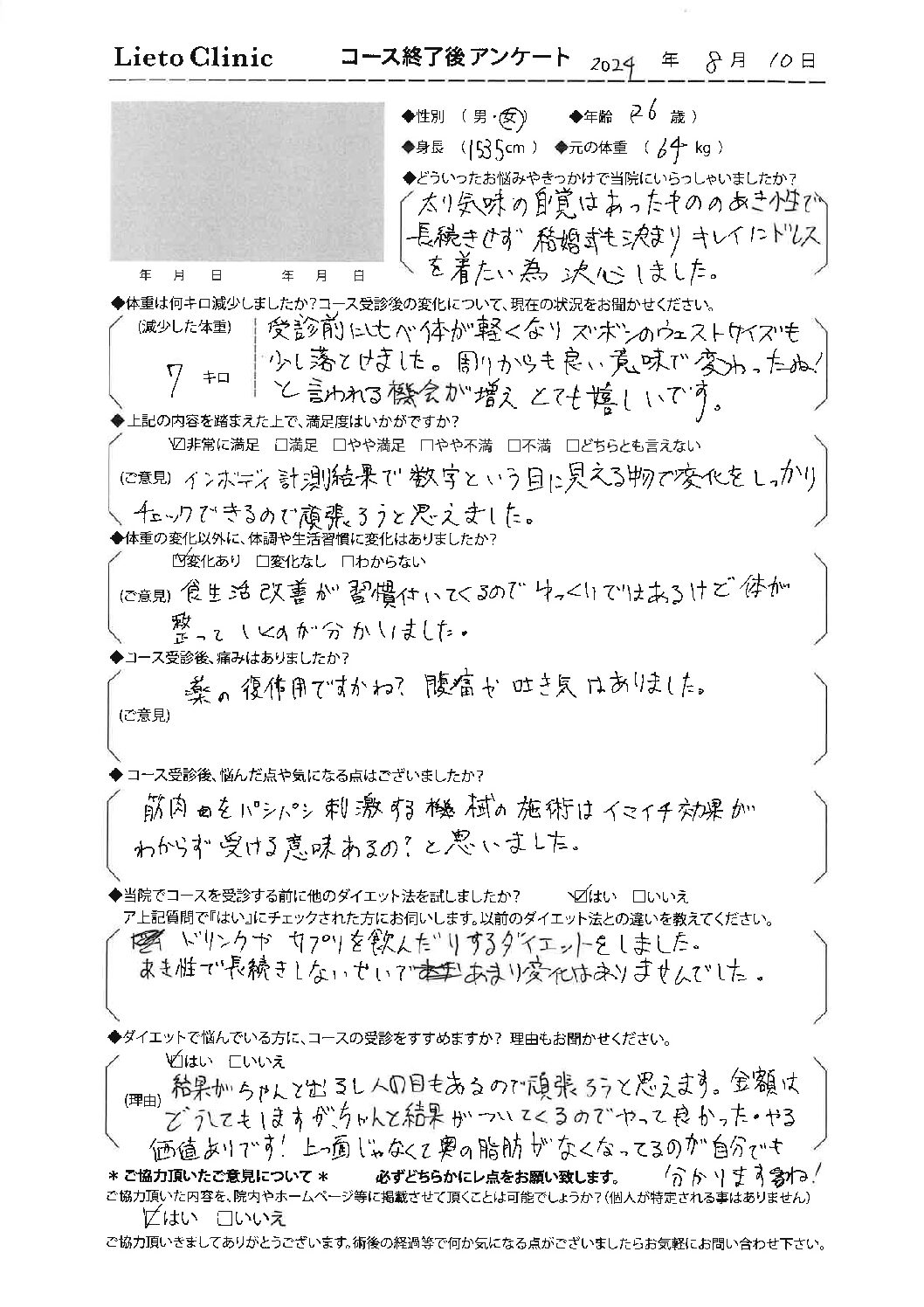 26歳 非常に満足